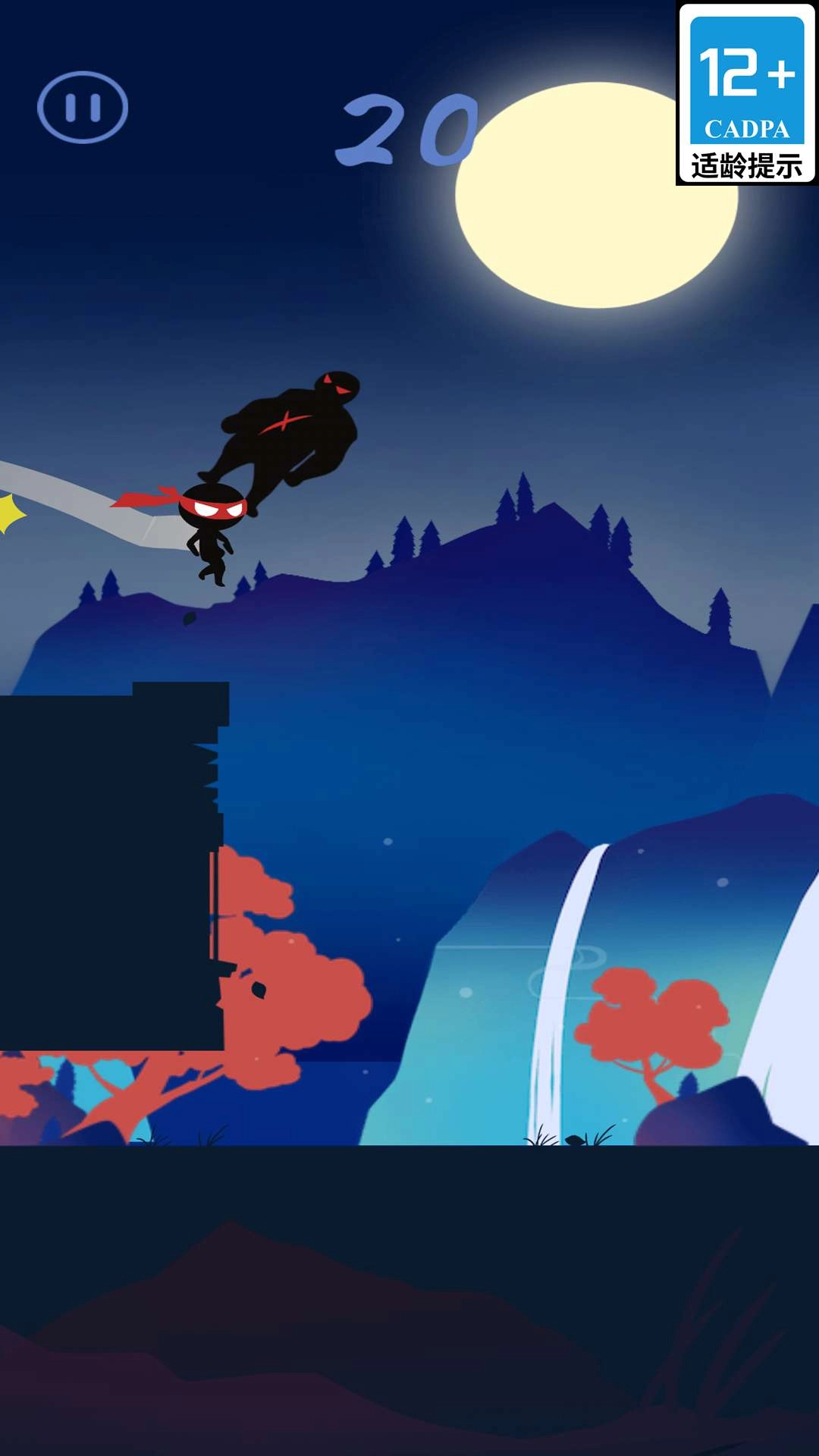 当忍者接近白色圆圈时,需及时点击屏幕让忍者完成跳跃前进,每次成功跳跃都会依据点击时机的不同获得相应积分。