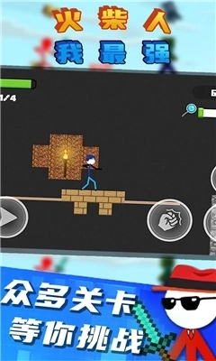 每个级别都设有不同的任务待完成,你得先熟悉这些游戏规则,才能迅速上手。《火柴人我最强》能应对各类挑战与危机,结合了一定的挑战控制能力,游戏性十分出色。游戏内包含丰富的内容选项,你可以选择自己最钟爱的模式去挑战和冒险,开启专属于你的火柴人冒险之旅。