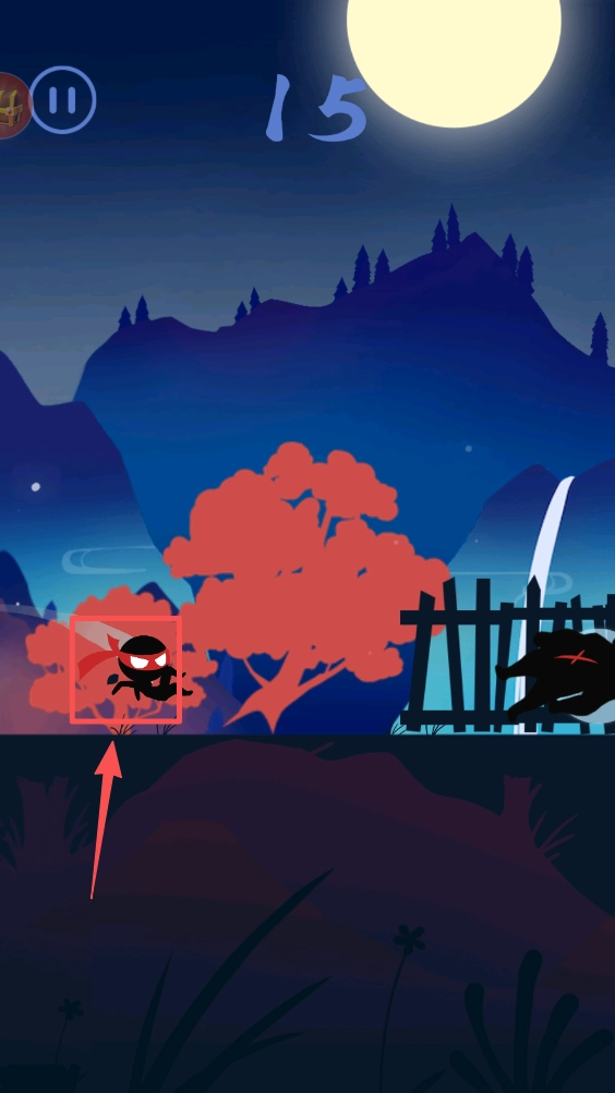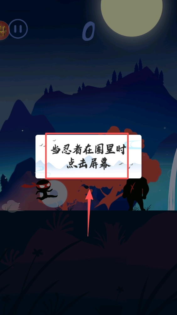 3、然后,当忍者在圈里时,点击屏幕进行跳跃,躲避障碍物和敌人,继续前进。