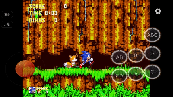 在关卡里,你可以用左侧的摇杆操控索尼克移动,右侧则分布着攻击与技能相关的按键。