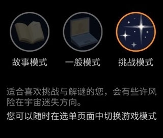 挑战模式适合热爱挑战与解谜的您,不过在宇宙中可能会有迷失方向的风险。