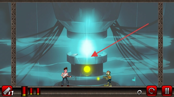 战斗过程中,留意箭头所指的发光装置,使用武器攻击僵尸,通过场景中的机关或道具,保护装置并歼灭敌人。