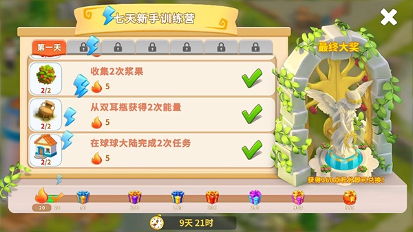 刚进入游戏时,可以先跟着指引简单熟悉一下游戏操作,然后去完成日常任务,开局游戏会赠送不少物资和道具。