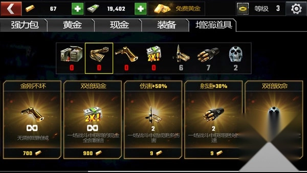 在进行任务前都能选择增强道具,提高游戏过程中武器的杀伤力和自身的保护