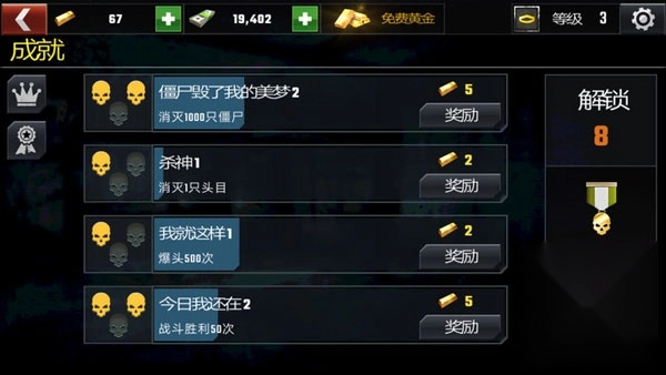 完成成就是玩家在游戏里获取黄金除充值外的主要途径,只要持续达成成就,就能领取更多黄金用于购买武器。