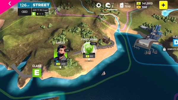 3、任务闯关式的赛车体验,挑战不同的赛道;