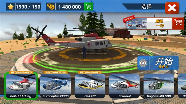 1、起飞前检查直升机,使直升机变得完美,并体验驾驶游戏的乐趣。