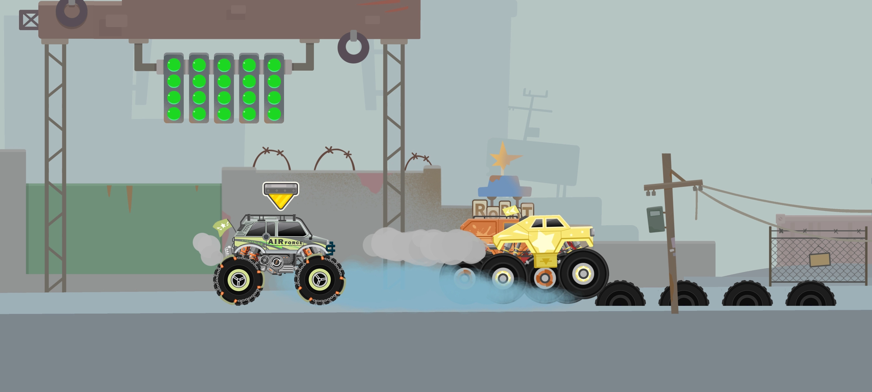 《大脚车总动员2》属于赛车竞速类游戏,以夸张炫酷的大脚卡车为核心元素,将驾驶模拟与横版闯关玩法相融合。游戏为玩家提供了12款以上风格不同的大脚车可供挑选,还设置了雪地、沙漠、城市等10多种主题赛道,这些赛道地形复杂且变化多样,具有十足的挑战性。