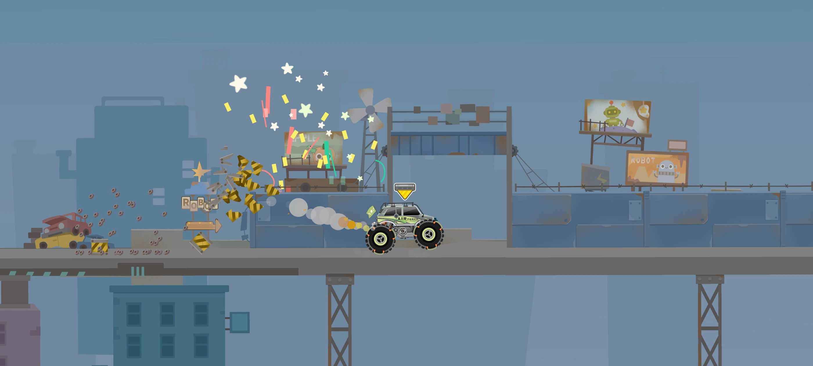2、横版驾驶挑战:采用横向视角推进,考验玩家对车辆重心与跳跃时机的掌控,避免翻车或卡顿影响进度。