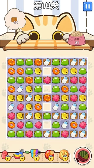 5、游戏沿用经典的三消玩法,大家只需收集对应的物品,但务必留意步数的消耗。