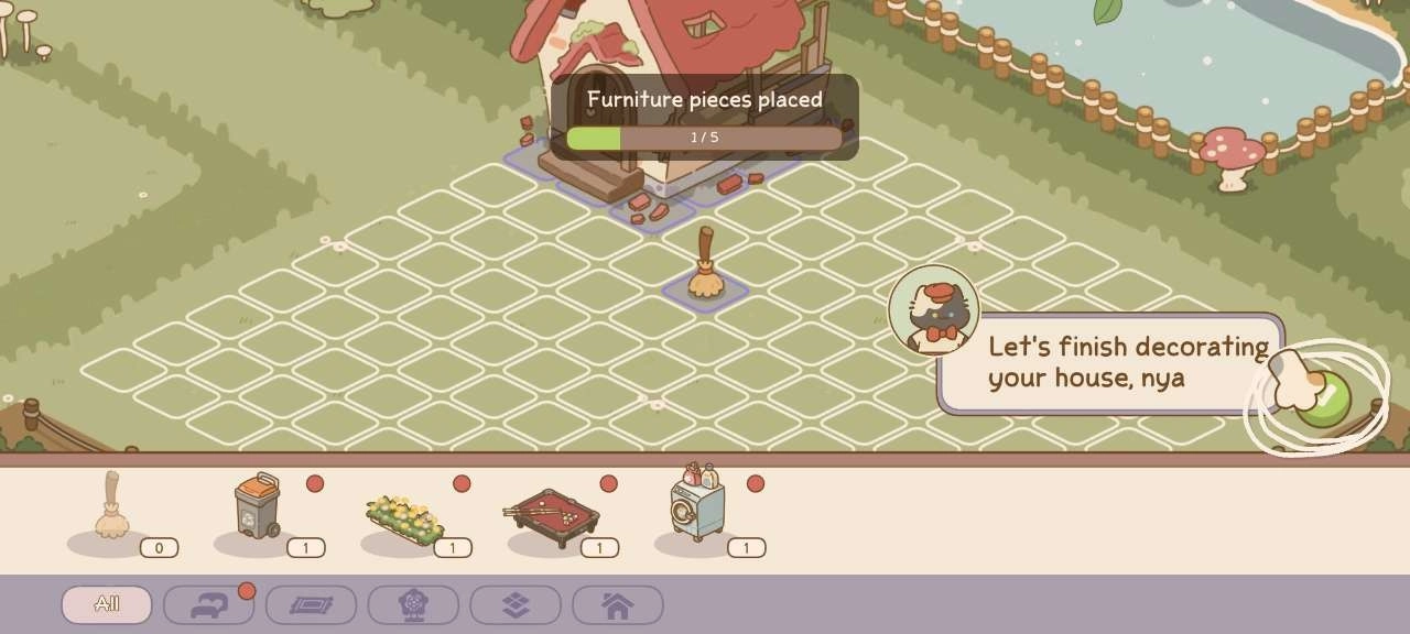 4、按照游戏给出的提示,将物品摆放在对应的正确位置,以此来搭建属于你的小摊