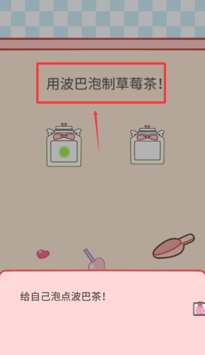 点击左边带绿点的罐子,开始制作草莓波巴茶。