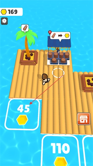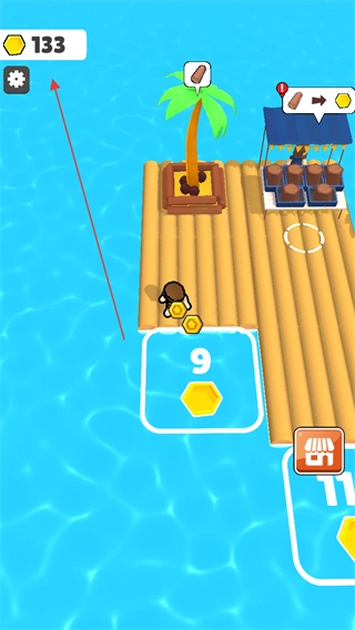 4、通过收集-售卖-升级的循环,逐步提升资源产出与收益效率,扩展木筏小岛的规模。