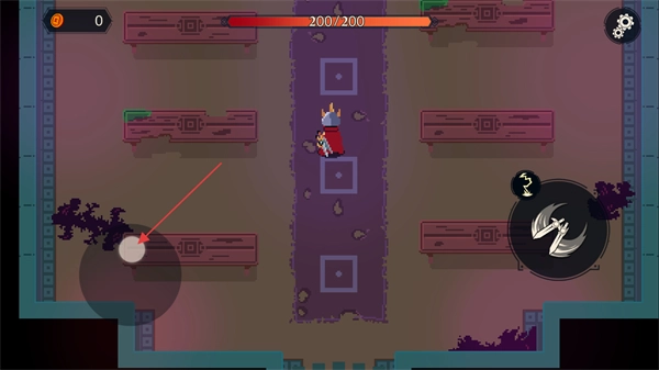 1、进入游戏场景后,通过左下角的移动键操控角色移动,同时留意顶部的血量状态,为后续应对敌人做好准备。