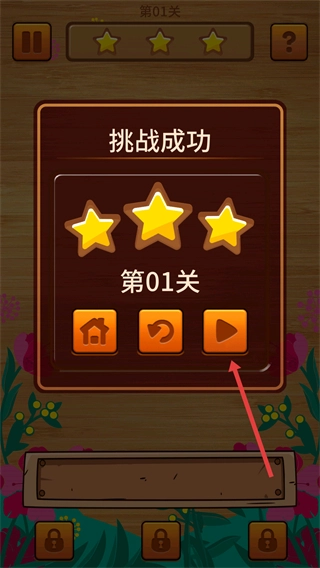 4、完成关卡消除目标后,触发【挑战成功】提示,点击【播放按钮】进入下一关。