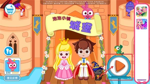 1、当界面显示【泡泡小镇城堡】时,点击被红色框标注的播放按钮,即可进入城堡主题的探索关卡,开启本次针对城堡场景的互动挑战。