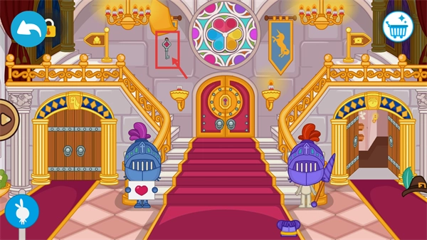 3、在城堡场景里,点击被红色框标注的钥匙区域,就能获得开门所需的道具,以此为后续开启主门的探索任务做好准备。