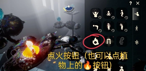(八)烧大花(大株黑暗植物)的时候,你在好友把你丢下的位置举火(点火:手捧燃烧的蜡烛)即可,大叫两三次为他回能,不要有其他操作。也不要牵手好友。