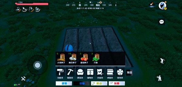 点击左下角的建造图标,选择地基部件,在想要耕种的位置放置地基区域。