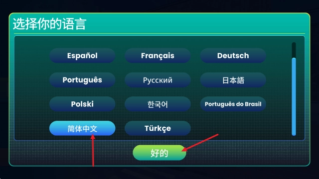 在语言列表里挑选“简体中文”,点击确认按钮就能完成语言切换啦。