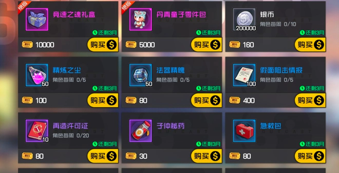 商城里限购的推荐道具包括角色栏位券、精炼之城、法器精魄和银币。抽补给这件事就不用多提了,毕竟抽卡一时爽,一直抽卡一直爽嘛。要是能抽到加十六的斗气光环自然最好,没抽到也不用太沮丧,其实抽到精炼法器的材料也不算亏,性价比还是可以的。交易行的道具得用金币购买,刚开服的时候可以适当收一些低价画像,到了后期价格会涨得比较贵。凝炁原石在初期的价格会很高,建议留下自己用的,其他的尽早卖掉,平时多去交易行逛逛,说不定能捡到漏呢!