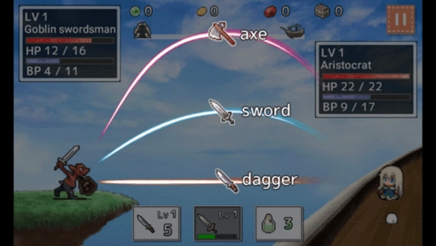 游戏的中间位置摆放着三件武器与装备,第一件是小刀,第二件是一把剑,第三件则是能力补给道具。