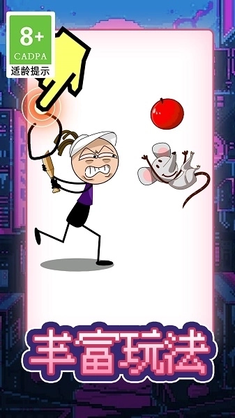 按照问题给出的提示,用手指在屏幕上描绘出恰当的线条,助力火柴人达成目标。