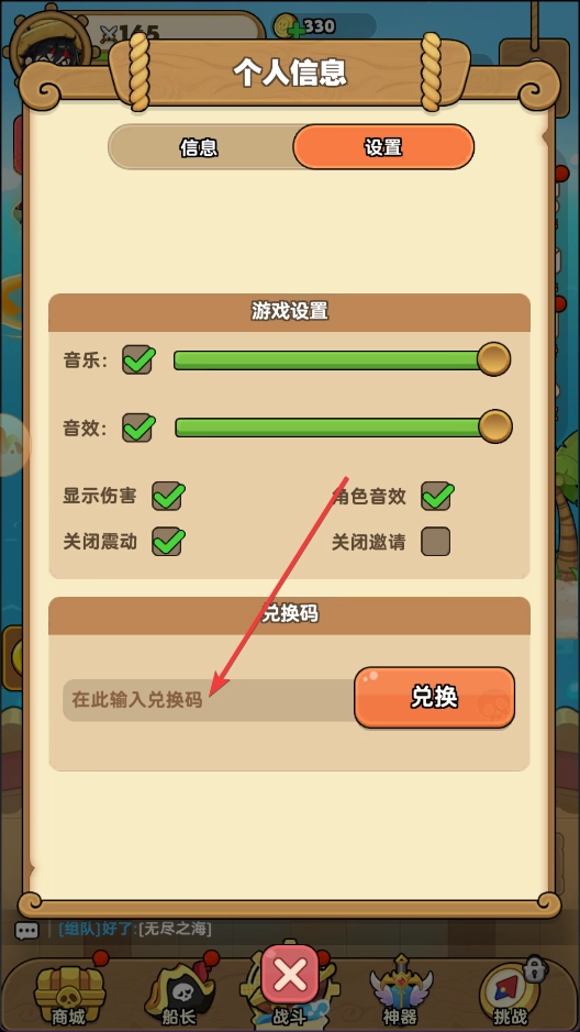 在兑换码区域输入进行兑换
