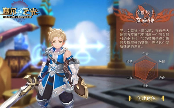 职业:全能战士;特色:近战/生存/机动;上手难度:★★;全能战士是高防御、高血量的近战职业,在团队中是当之无愧的肉盾担当。尽管承担着肉盾职责,它却具备强劲的攻防实力与出色的机动性,始终战斗在战场最前线,操作相对简单,适合初、中级玩家选择。