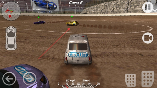 留意左上角的小地图,以此掌握赛道布局与其他车辆的方位,操控赛车在泥地赛道上行驶。