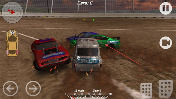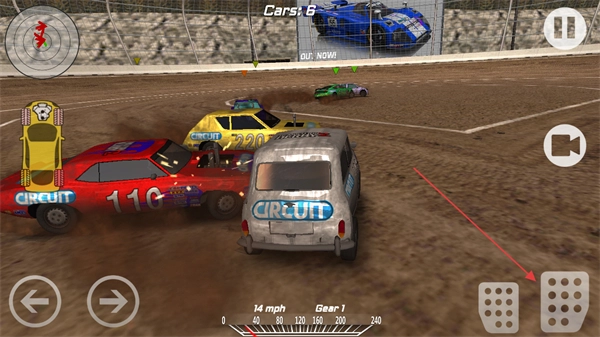 通过右侧操作区操控赛车进行加速,不断撞击其他赛车,在混乱的局面里逐步提高自己的排名。