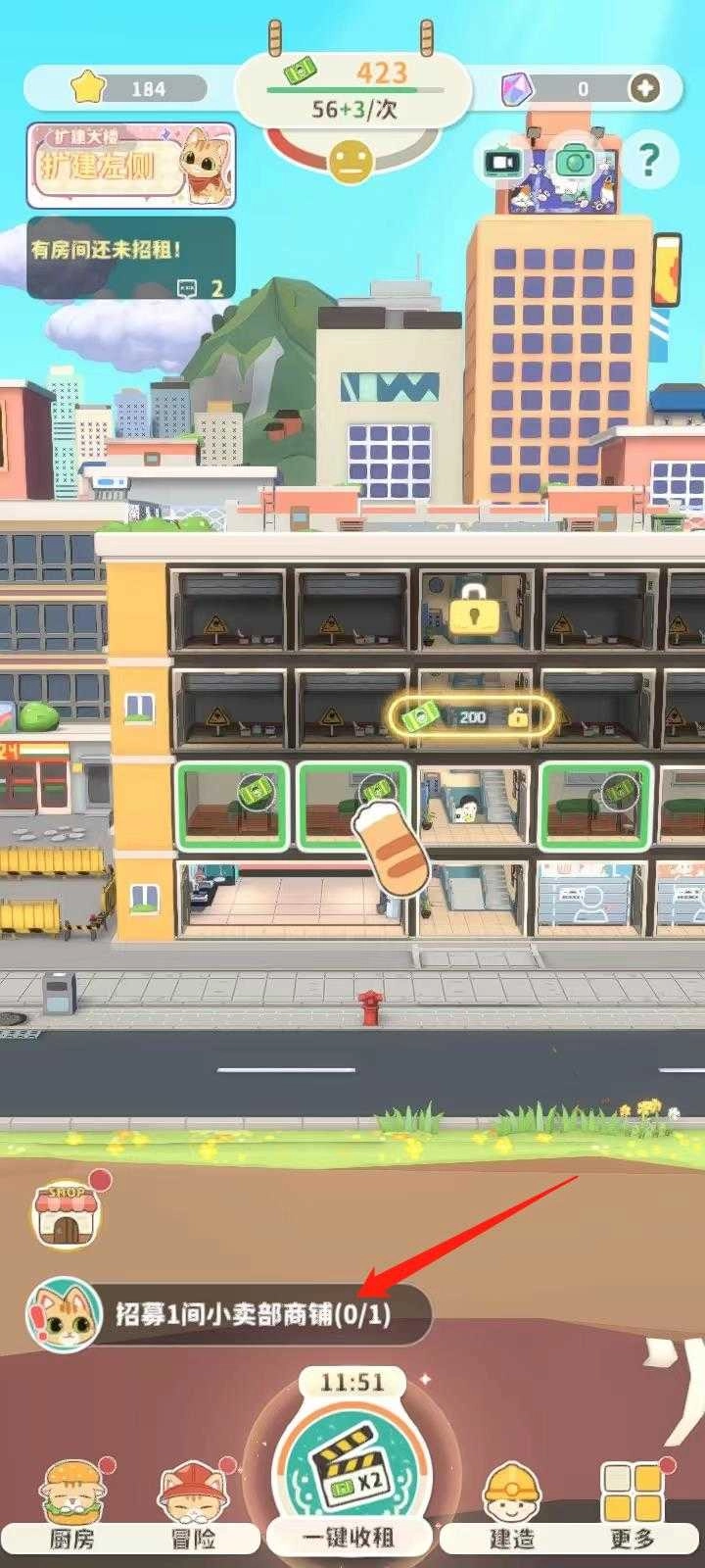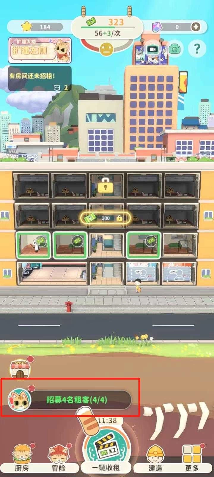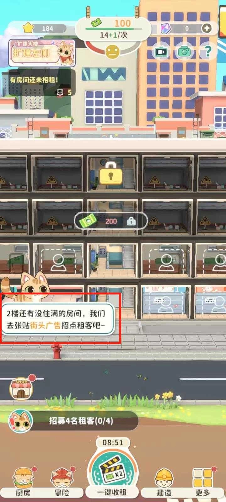 点击下方这个地方去张贴街头广告来招些租客,同时招募4名租客。