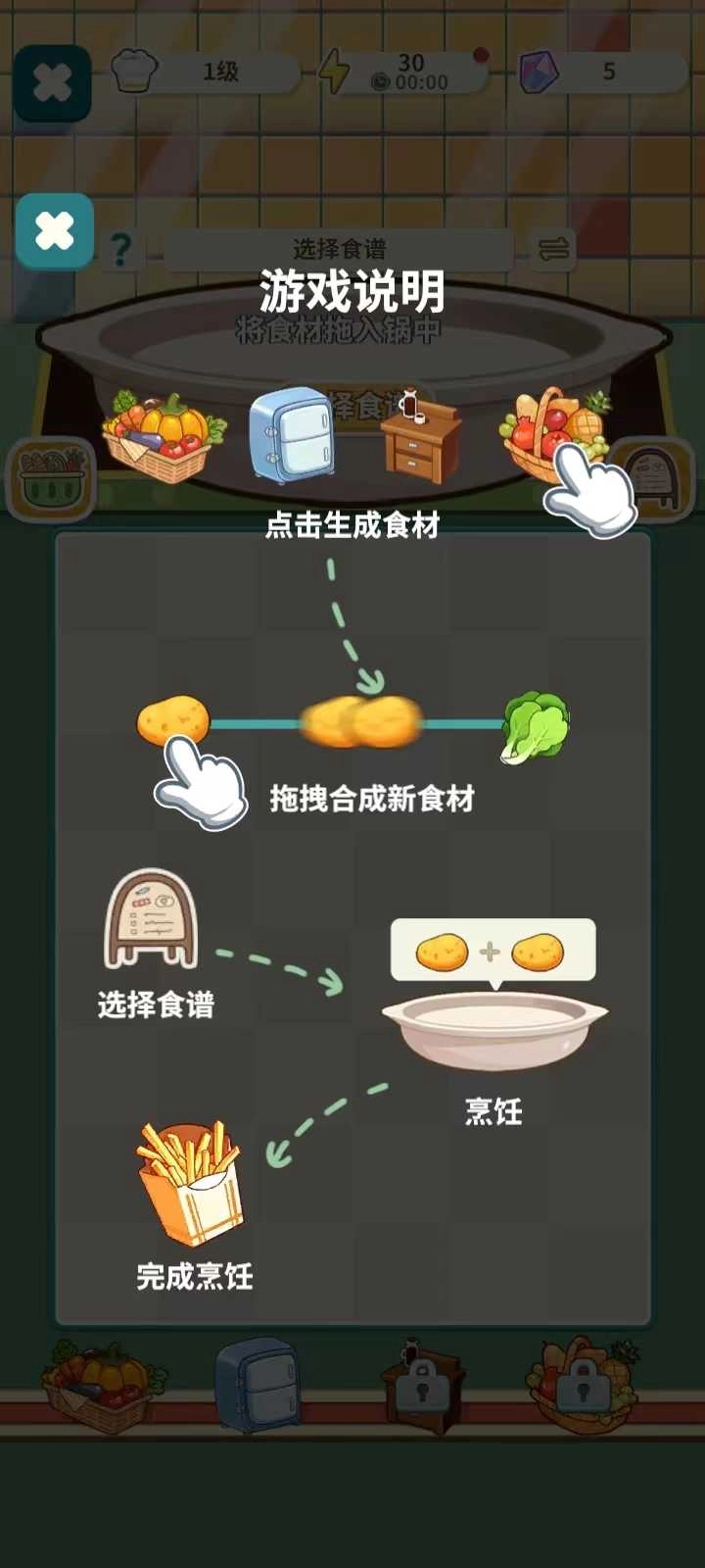 玩家也能点击下方功能栏里的【厨房】,进入之后同样会有一段游戏说明,玩家可以认真查看。