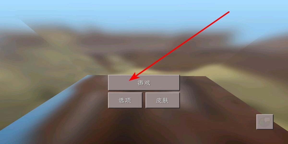 进入游戏后,你会看到游戏、选项、皮肤三个按钮,点击游戏按钮,即可开启你的游戏冒险之旅,进入具体的游戏世界选择与创建界面。