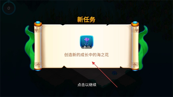 收到新任务啦,要创造一朵正在成长的海之花,点击“继续”就能开启任务咯。