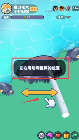 根据游戏指引,左右滑动屏幕可以调整棒的位置。