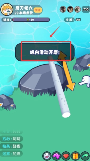 然后滑动屏幕上下即可开磨铁棒。