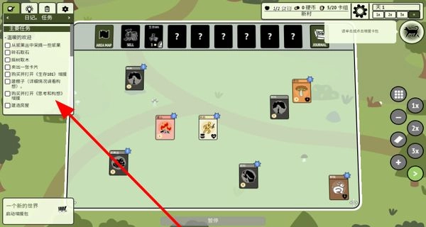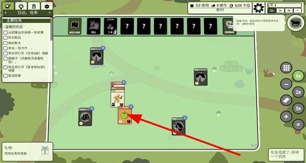进入游戏后,左侧会呈现主要任务,像采摘浆果、碎石取木之类,要依照任务要求一步步完成。