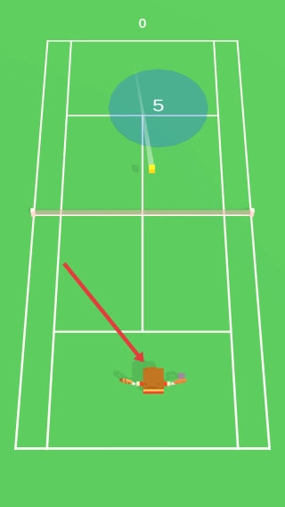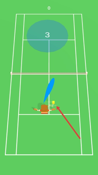 进入网球关卡后,留意球的落点轨迹,红色箭头会给出提示,你需要操控角色移动到相应区域,做好接球回击的准备。