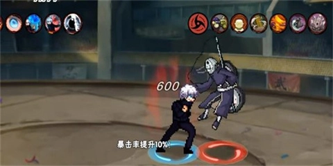 通过施展忍术击败对手就能进入下一层关卡,成功通关会掉落金币奖励;要是战斗失败就得重新开始挑战,而这样的挑战永远没有尽头。