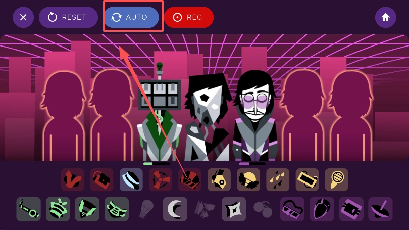 在紫黑色调的崩坏场景里,一些装饰元素会和背景形成动态互动。比如,把“触手”装饰拖到角色那里时,背景里的触手会跟着蠕动,还伴有黏腻的滑动音效;要是在特定关卡(像第七阶段)选用“黑帽”角色,所有音符都会变成血红色,拖动其他装饰时会出现残影效果,让恐怖感得到进一步增强。