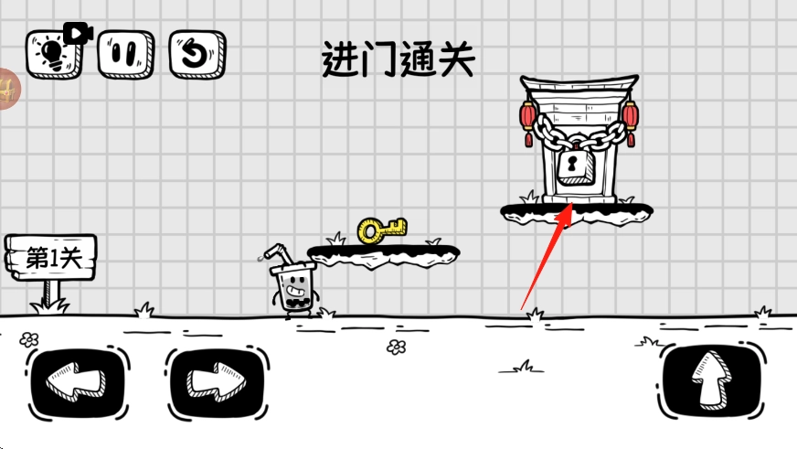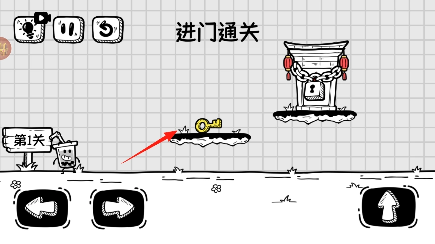 操控角色,用左右按钮移动至钥匙处,靠近自动拾取,为开门备关键道具。