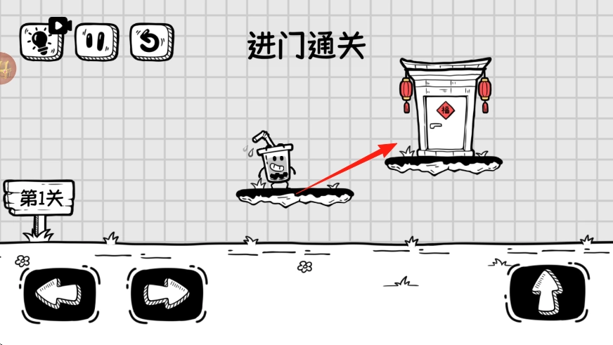 石门解锁后变成了福字门,再次移动靠近这扇门,进入门内,即可达成第1关的通关条件。