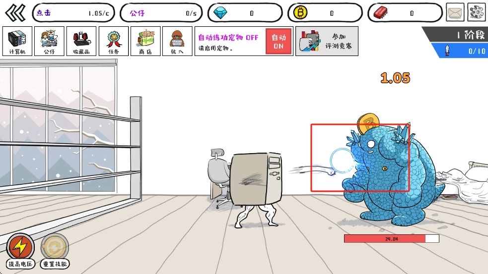 点击收集零件:当我们不断点击电脑的各个部位时,会触发妖怪掉落零件,加快点击速度能使零件掉落得更密集,要留意分辨有用的零件和来捣乱的妖怪,以免浪费操作。