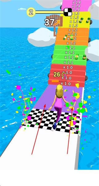到达关卡终点后,依据积累的成长数值来获取对应倍率的收益,随后完成当前关卡并进入下一关。