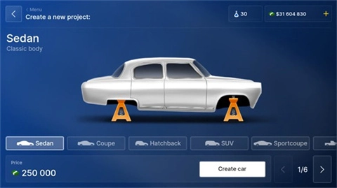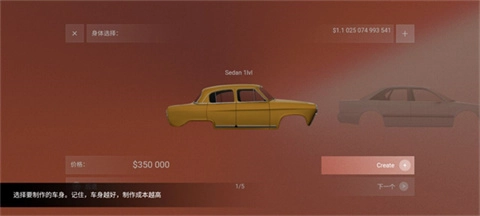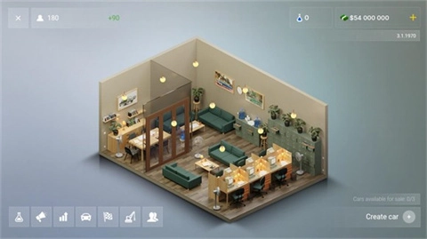 公司创建完毕后,玩家会进入公司的管理界面,点击右下角的“创建汽车”按钮,着手组装自己的第一辆车。