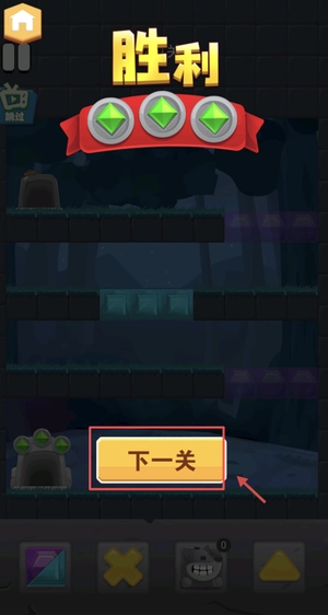 成功收集钥匙后,胜利界面便会出现,这时只需点击下一关按钮,就能继续挑战新的关卡了。