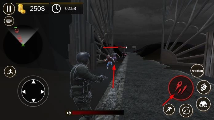 战斗时,你需要操控角色在场景里移动,通过虚拟摇杆来调整方向,点击攻击按钮就能射击僵尸。要留意躲避僵尸的攻击,还可以用技能来辅助战斗。