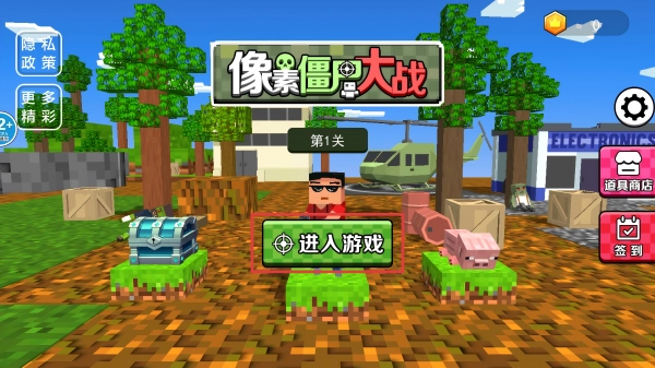 进入主界面后,我们点击【进入游戏】按钮,开启第1关的像素僵尸大战。