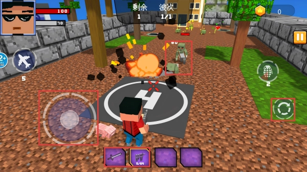 在战斗场景中,通过左侧的虚拟摇杆来操控角色移动,对准出现的僵尸后,点击右侧的射击按钮发起攻击,要是碰上大量僵尸,还能切换威力更强的武器。